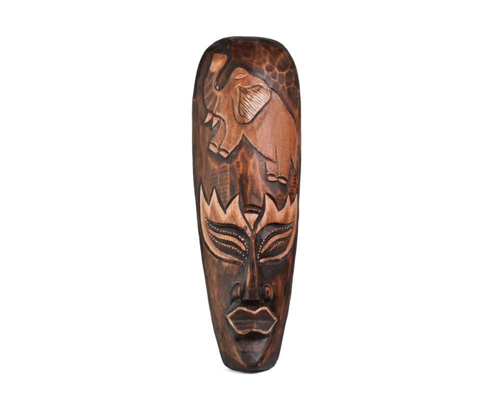 Dekorativní indonéská maska s vyřezaným dekorem slona.Rozměry 30 x 9 cmVáha cca 200g przeczytaj całość