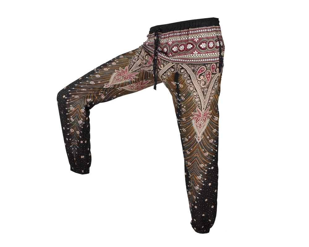 Kalhoty Joga WIN , bavlna, hnědé, paví péra