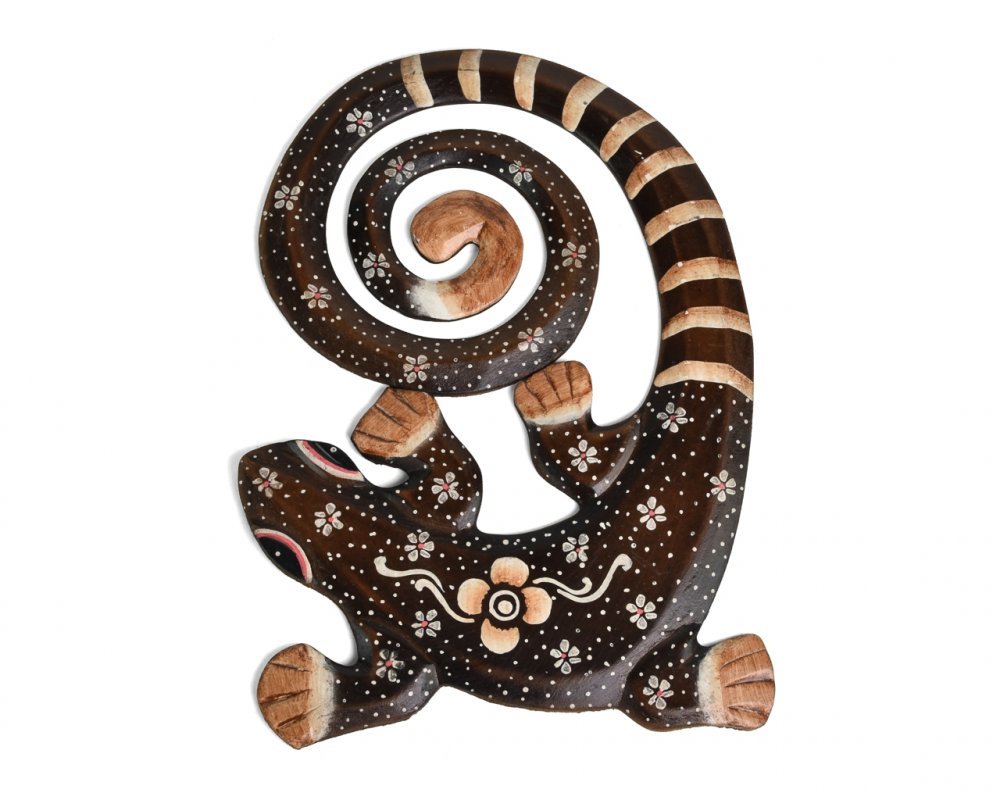 Dřevěná ještěrka s kytičkami a pruhy 30 cm