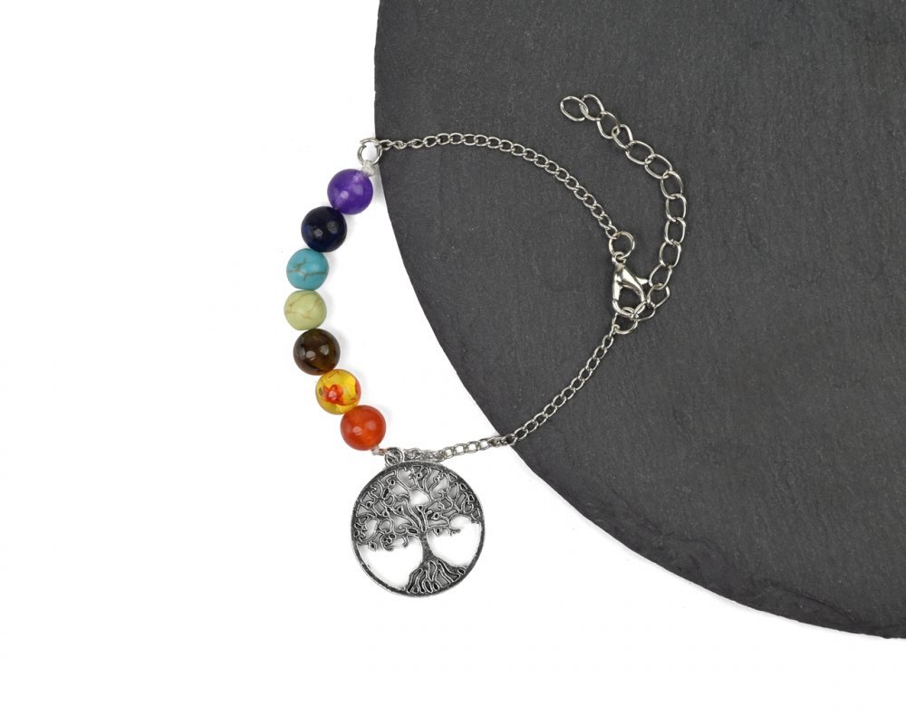 Náramek posiluje sedm hlavních čaker.Storm života symbolizuje stvoření, žití a nesmrtelnost, přináší pozitivní energii. Parametry: Délka: 19-24 cmPrůměr jedné kuličky: 8 mm Materiál: plast, kov przeczytaj całość