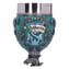 Zielony, wężowy kubek dla czarodziejek, magów i wszystkich obdarzonych magią uczniów Slytherinu, słynnego domu z Hogwartu! Rozkoszuj się ulubionym napojem i popijaj przygody Harry'ego Pottera. Ręcznie malowany kubek z żywicy syntetycznej posiada wyjmowany wkład ze stali nierdzewnej, co ułatwia konserwację. Kubek nie nadaje się do mikrofalówki ani do zmywarki. Materiał: żywica, metal