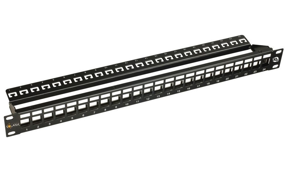 Patch panel Solarix modulární neosazený 10G,Cat 6a STP, 24 portů, černý 1U