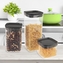 Dóza na uskladnění potravin Vám skvěle uchová aroma i chuť uložených potravin, dózy jsou pevně uzavřeny víčkem se silikonovým těsněním. Nevhodné na horké potraviny. Otevírání a zavírání je velmi snadné a spolehlivé. Materiál: plast PS, silikonové těsnění. Transparentní. Nejsou vhodné do myčky na...
