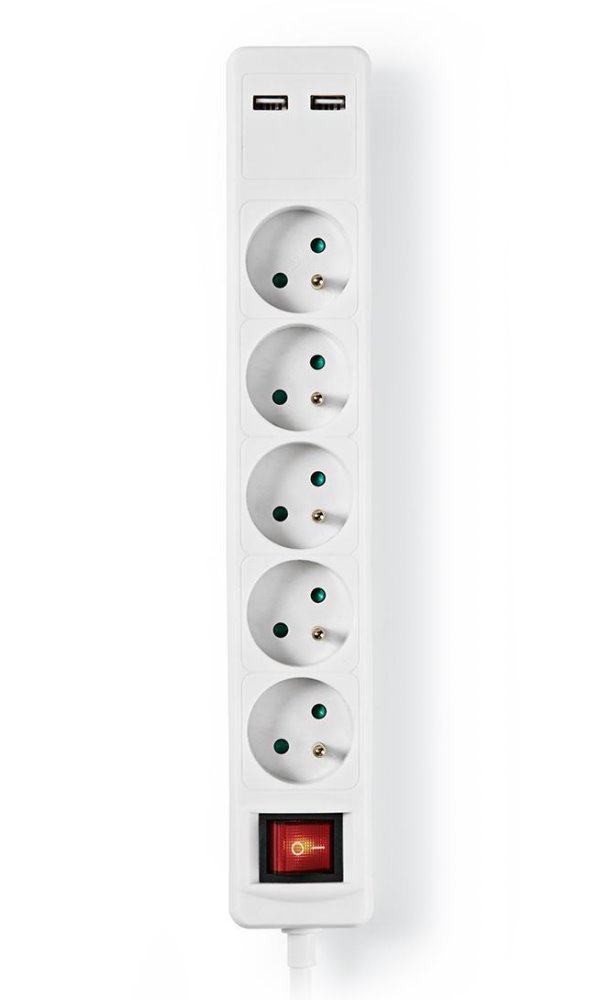 NEDIS napájecí prodlužovací zásuvka/ úhlová/ 5x zásuvka/ vypínač/ bílá/ 1,5m