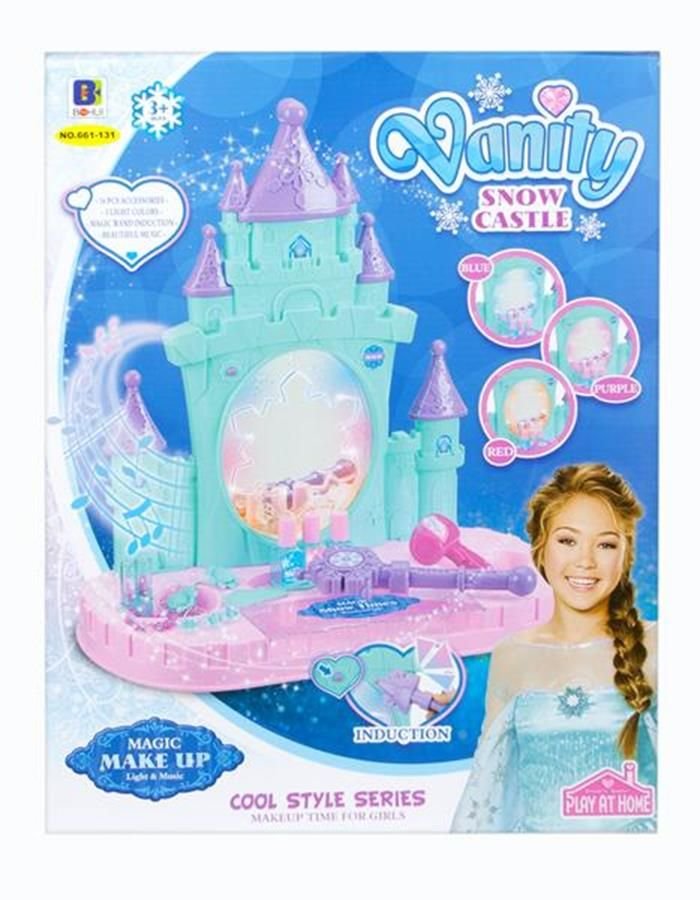 Krásný toaletní stolek MEGA CREATIVE ve tvaru zámku obsahuje spoustu doplňků, které jistě potěší každou mladou dámu. Každá princezna sní o tom, že bude krásná už od rána! Kosmetický stolek obsahuje multimediální funkce - zrcadlo se rozsvítí ve třech barvách: modré, růžové a červené. Sada...