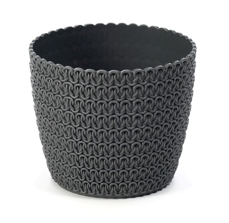 Plastový květináč Magnolia Jersey z vnější strany zdobený pleteným dekorem. Květináče jsou vhodné do interiérů i ven. Barva: antracitová Rozměr: výška 14 cm průměr 16 cm przeczytaj całość