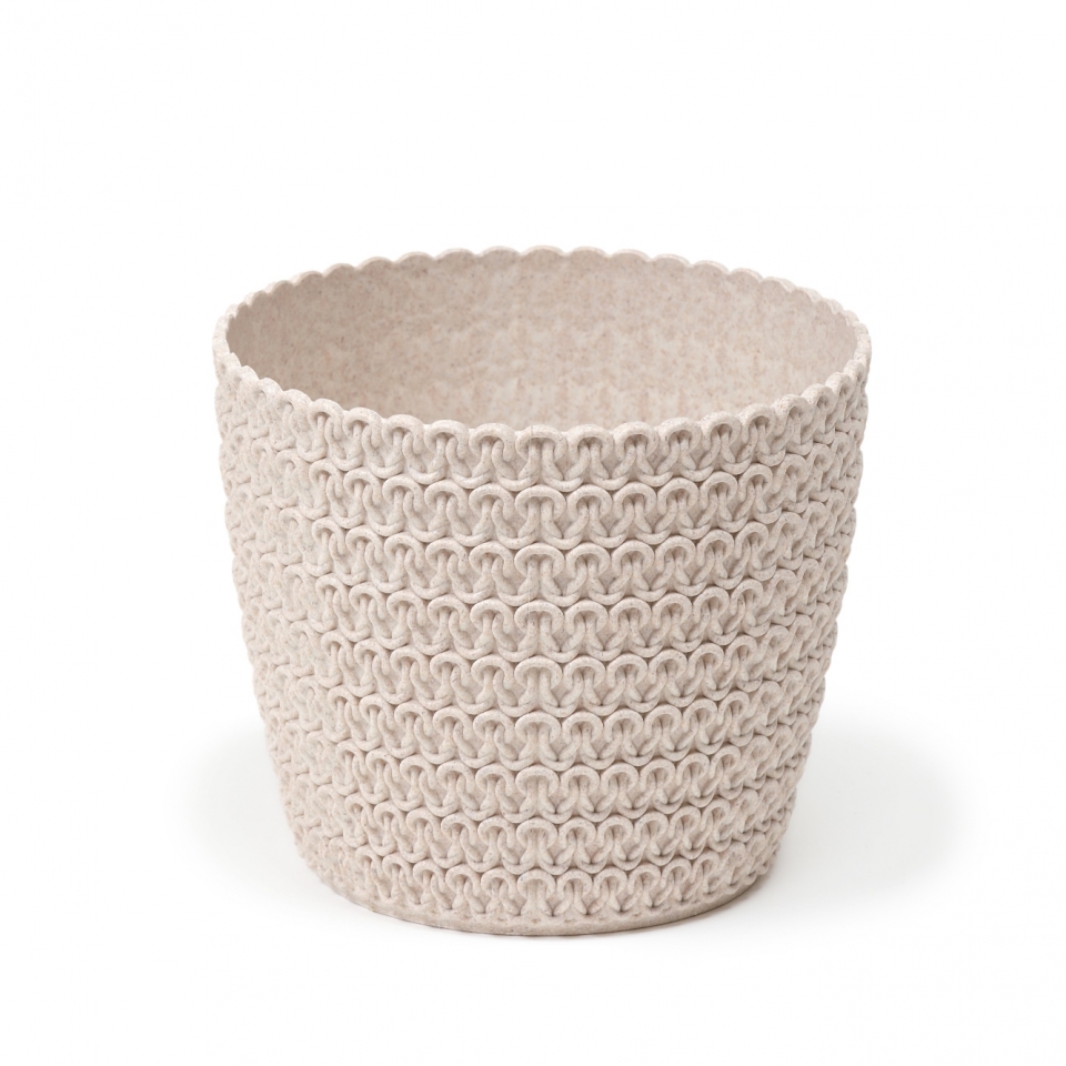 Plastový květináč Magnolia Jersey ECO z vnější strany zdobený pleteným dekorem. Květináče jsou vhodné do interiérů i ven. Nová řada ECO květináčů je vyrobena z recyklovaného plastu s významnou příměsí dřeva. Každý květináč řady ECO obsahuje až 40% dřeva.Barva: bíláRozměr:výška 16 cmprůměr 19 cm przeczytaj całość
