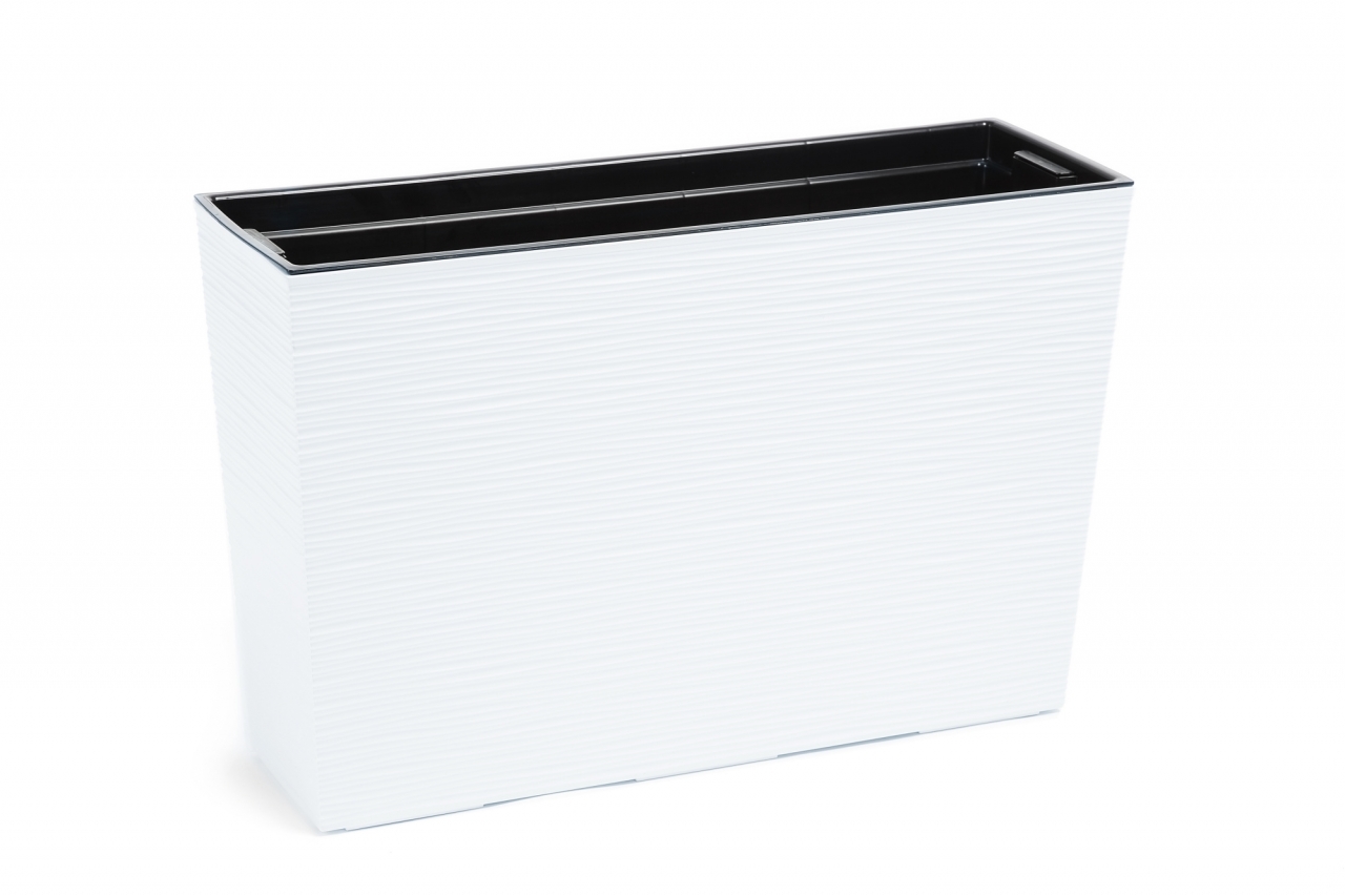 Plastikowe korytko z prążkowaną powierzchnią. W skład każdego korytka wchodzi wyjmowana plastikowa wkładka z uszami ułatwiającymi manipulację oraz knotami. Rośliny sadzi się do plastikowej wkładki. Nadmiar wody jest zbierany w zewnętrznym korytku; w przypadku nadmiaru należy wodę wylewać. Kolor: biały Wymiary: wysokość 36,5 cm szerokość 19 cm długość 56 cm