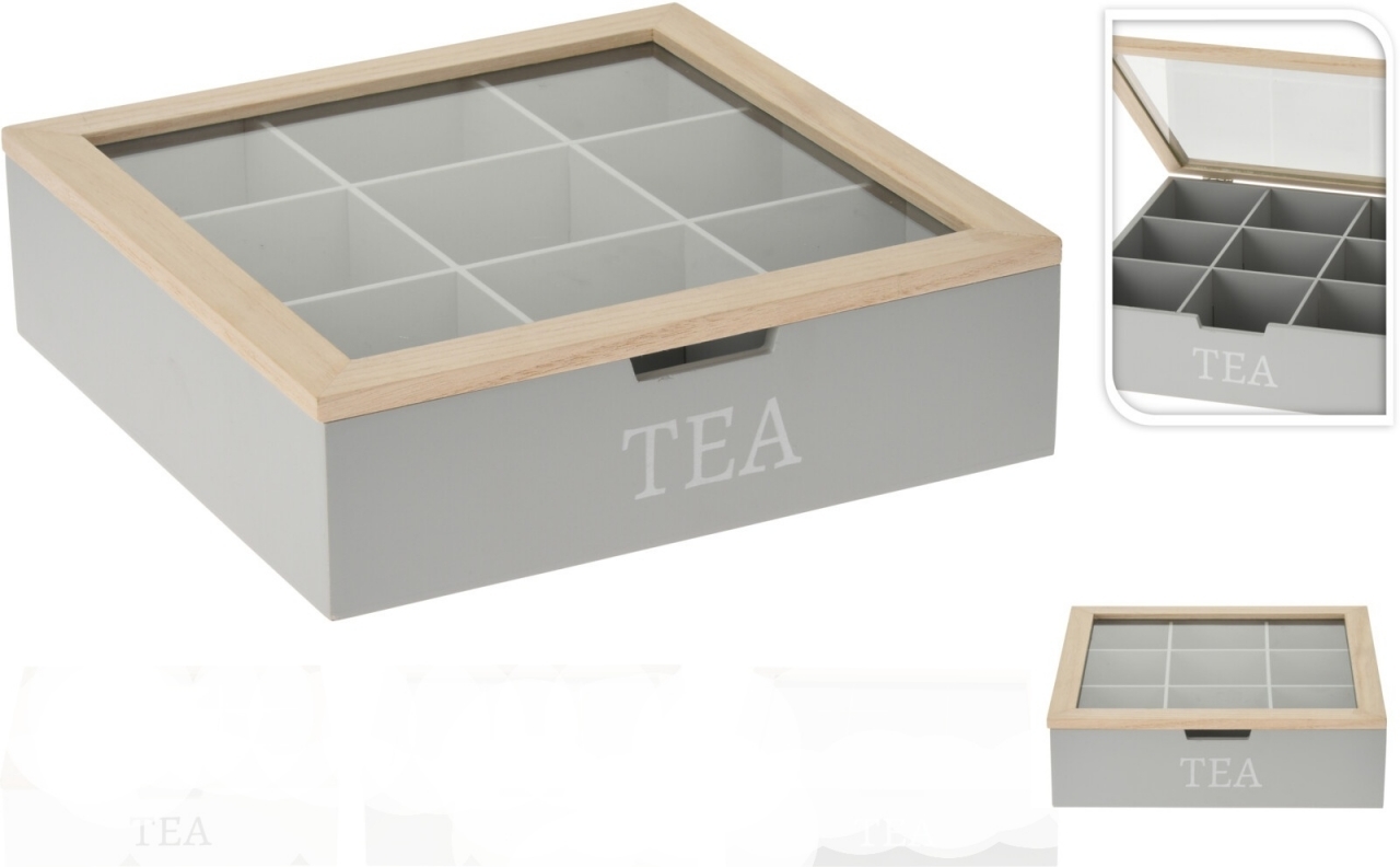 Dřevěná krabička na čaj je pravou volbou pro všechny, kteří si nedokáží představit ráno bez šálku lahodného čaje. Krabička má 9 přihrádek a průhledné víko.Materiál: MDF deskaBarva: šedáRozměr:výška 7 cmšířka 24 cmdélka 24 cm przeczytaj całość