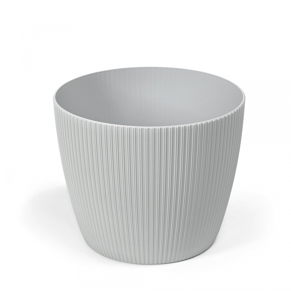 Plastový květináč Magnolia Jumper z vnější strany zdobený proužkem. Květináče jsou vhodné do interiérů i ven. Barva: světle šedá Rozměr: výška 180 mm průměr 220 mm przeczytaj całość