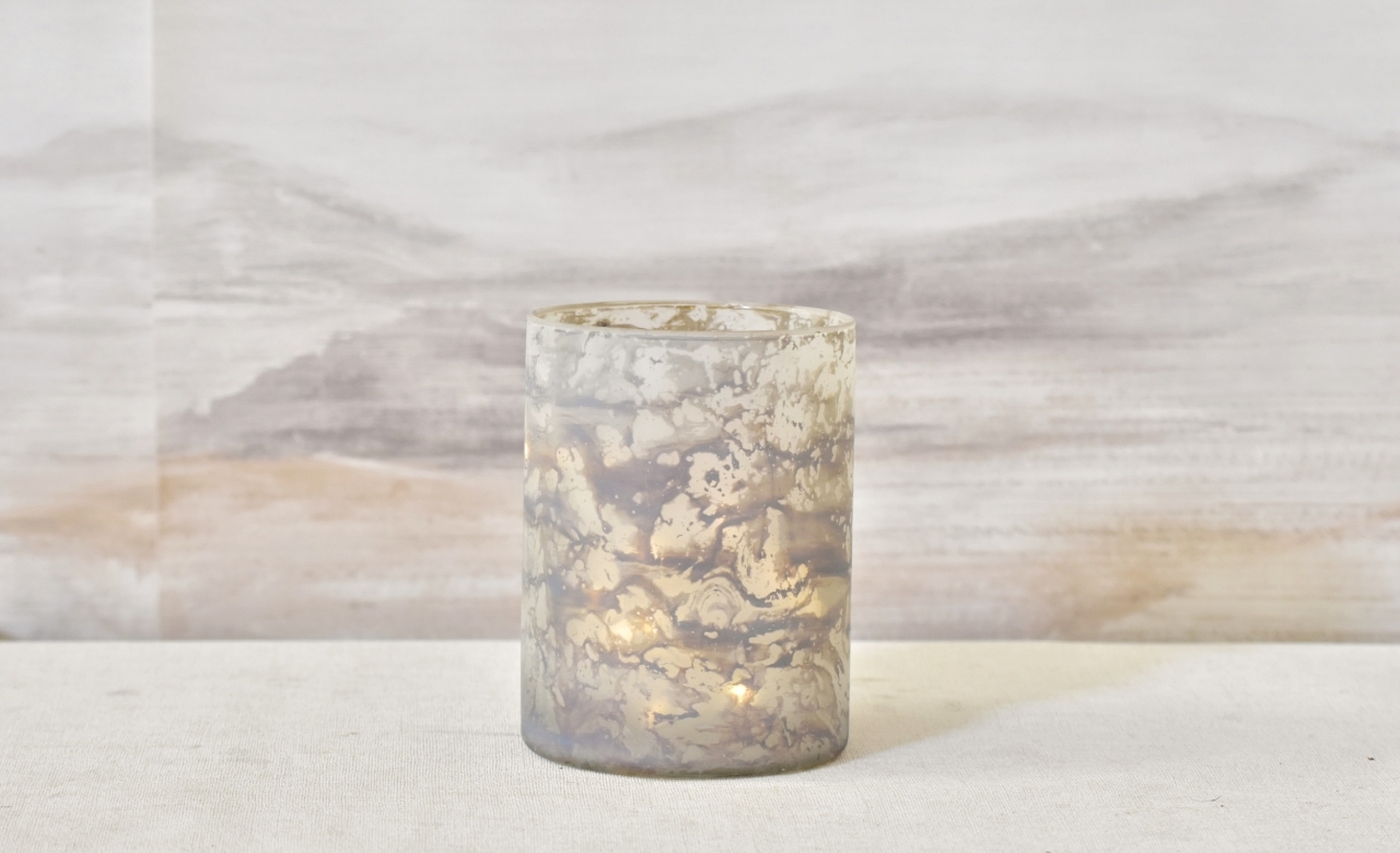 Skleněný svícen z pískovaného skla a mramorovaným dekorem. Svícny se hodí do moderních interiérů a také do interiérů v rustikální stylu.Materiál: skloBarva: světle šedá - matnáRozměr:výška 10 cmprůměr 13,5 cm przeczytaj całość