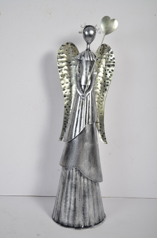 Plechový anděl Wave stříbrný-champagne se srdíčkem, 53 cm