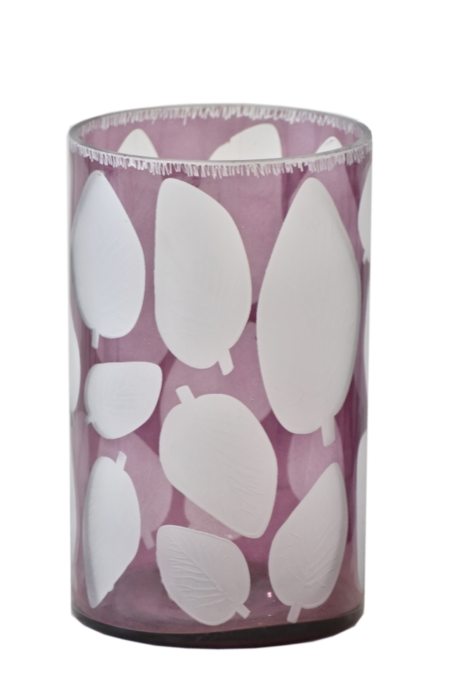 Skleněný svícen lila s listy 25x15 cm