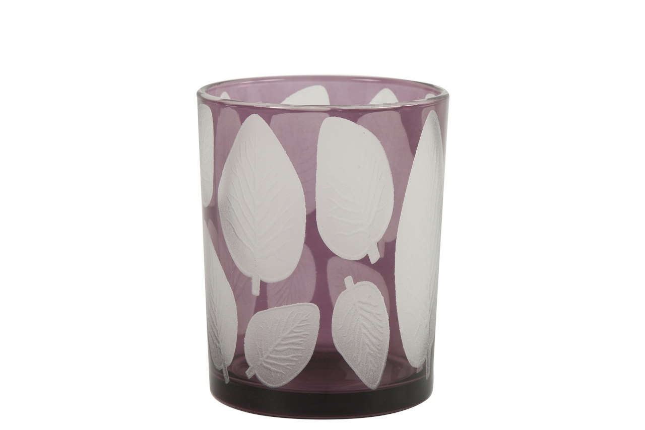 Skleněný svícen Zora, lila s listem 12,5x10 cm