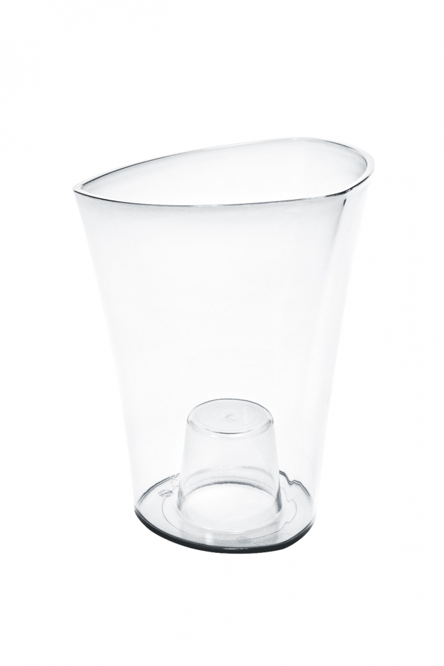 Plastikowa doniczka na storczyki Wenus z połyskującą powierzchnią - trójkątny design. Doniczki mają podwyższone dno, dostosowane do storczyków i roślin wrażliwych na przelanie. Woda nie znajduje się bezpośrednio przy korzeniach, dzięki czemu rośliny lepiej rosną. Barwa: przezroczysta Rozmiar: wysokość 18 cm średnica w górnej części 14 cm