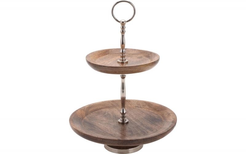 Dřevěný etažér s kovovými prvky.Materiál: dřevo, kovRozměr:výška 42 cmprůměr 30 cm, průměr 20 cm przeczytaj całość