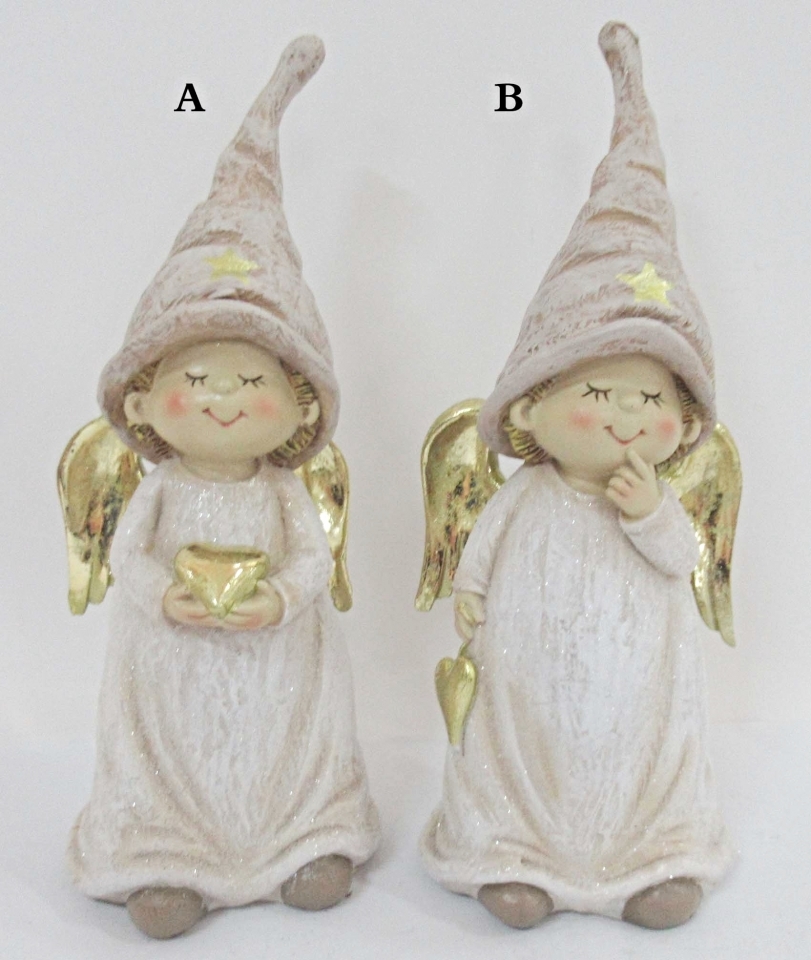Roztomilý andílek s velkou čepicí.Materiál: polyresinRozměry:výška 18 cmšířka 7 cmhloubka 6 cm1 balení = 2 ks, mix druhů. przeczytaj całość