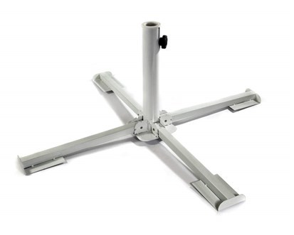 HAPPY GREEN Stojak na parasol to metalowy składany stojak z plastikową wkładką, który idealnie nadaje się nie tylko do mocowania ogrodowego parasola, ale także do zewnętrznych suszarek czy jako kotwica dla altany ogrodowej. Jego wymiary po rozłożeniu wynoszą 85 x 85 x 35 cm, z wewnętrzną średnicą 50 mm lub 38 mm dzięki plastikowej redukcji, która pozwala na pewne i bezpieczne osadzenie parasola. Kolor: biały
