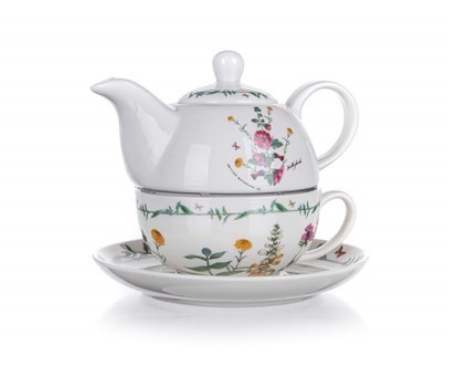 Čajová sada SPRING je vyrobena z keramiky v bílé glazuře s dekorem květin. Objem konvice je 400 ml a objem šálku 220 ml. Konvici se šálkem je možné mýt v myčce na nádobí, ale pro zachování dokonalého vzhledu, doporučujeme umývat ručně. przeczytaj całość