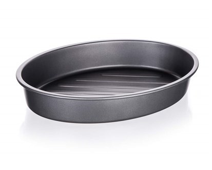 Oválný pekáč 30 x 21,5 cm CULINARIA je vyroben z uhlíkové oceli s nepřilnavým povrchem (Xynflon). Vnější povrch je v šedostříbrném provedení. Hloubka pekáče je 5 cm, tloušťka materiálu je 0,4 mm. Nepřilnavý povrch XYNFLON je vyroben na bázi PTFE (polytetrafluorethylen), je vysoce odolný, má prvotřídní antiadhézní vlastnosti a snadno se udržuje.
