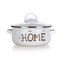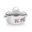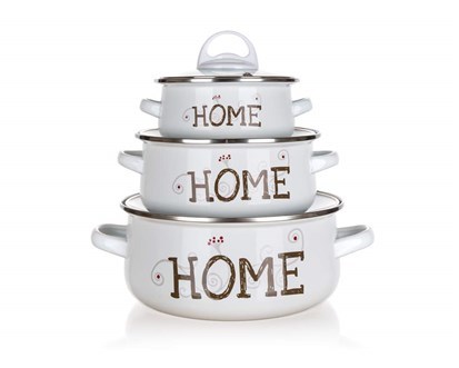 Zestaw zawiera trzy garnki o różnych rozmiarach (14 x 7 cm, 18 x 8,5 cm i 22 x 10,7 cm), co pozwala przygotować szeroką gamę potraw - od mniejszych porcji po większe dania dla rodziny lub gości. Garnki są białe z delikatnym dekoru HOME i wyposażone w szklane pokrywki z praktycznym plastikowym uchwytem, który ułatwia manipulację podczas gotowania. Dzięki emaliowanej powłoce garnki są trwałe i łatwe w czyszczeniu, można je bez obaw myć w zmywarce. Dna garnków są oznaczone specjalnymi nadrukami, które pełnią rolę piktogramów, ułatwiając rozpoznanie poszczególnych rozmiarów.