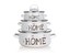 - Elegancki biały design z dekoracją HOME dla stylowej kuchni
