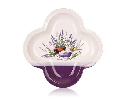 Servírovací mísa čtyřlístek 32 cm LAVENDER, materiál - keramika, fialovo-bílá glazura s dekorem levandule. Mísu lze mýt v myčce na nádobí. przeczytaj całość