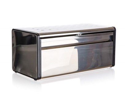 Nerezový chlebník QUADRA o rozměru 39,5 x 20,5 x 18 cm s černým lemem slouží k uchovávání všech druhů pečiva. Povrchová úprava: lesk, typ nerezové oceli: 430, síla nerezu 0,3 mm. przeczytaj całość