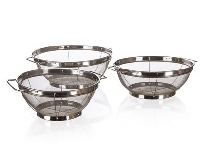 Sada sítek s podstavcem AKCENT obsahuje 3 ks: 1 x cedník o průměru 18,5 cm,1 x cedník o průměru 21,5 cm a 1 x cedník o průměru 24,5 cm. Nerezové sítko s podstavcem a uchy je skvělý a praktický pomocník do vaší kuchyně při oplachování ovoce, zeleniny nebo cezení těstovin. Sítka jsou vyrobena z... przeczytaj całość