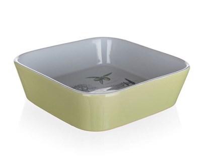 Keramická čtvercová zapékací mísa OLIVES o rozměru 17,5 x 17,5 x 5 cm, uvnitř bílá glazura a dekor olivy, vnější strana formy má zelenou barvu. Keramické formy rovnoměrně absorbují teplo a postupně ho uvolňují, díky čemuž se pokrmy dobře propečou. przeczytaj całość
