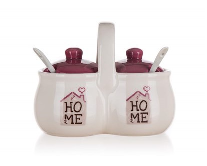 2dílná dóza s keramickými lžičkami v bílé a bordó barvě s dekorem HOME vyrobená z keramiky. Lze použít do mikrovlnné trouby i do myčky, ale pro zachování dokonalého vzhledu doporučujeme umývat ručně. V nabídce máme další produkty z kolekce HOME. przeczytaj całość