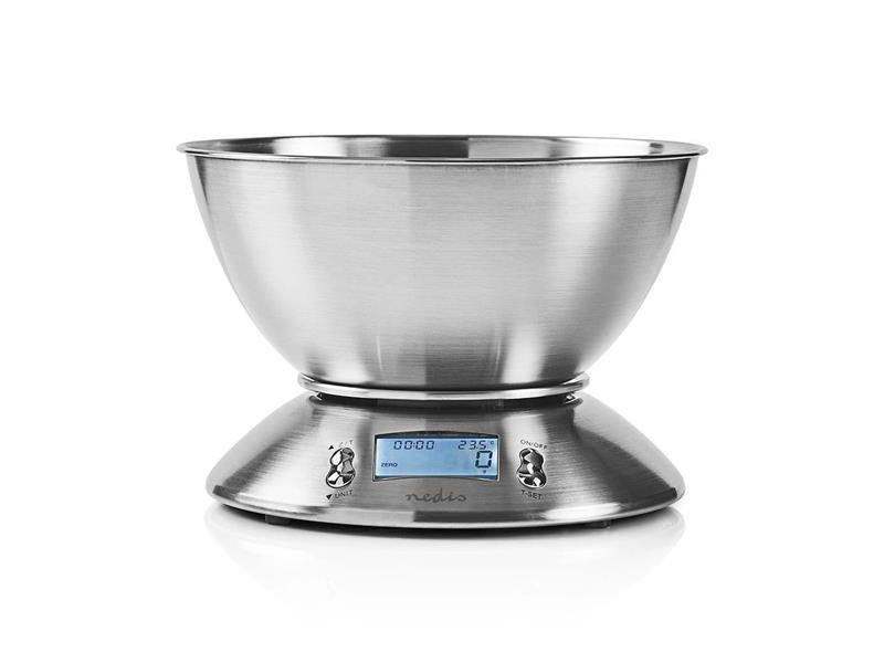 Umístěte digitální kuchyňskou váhu s vestavěným teploměrem a budíkem ve své kuchyni a budete moci vážit přísady do celkové hmotnosti pět kilogramů. Součástí dodávky je vyjímatelná mísa z nerezové oceli, která se snadno čistí.