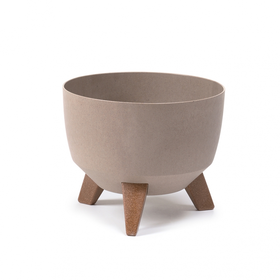 Plastowa misa Roma eco coffee na nóżkach może być traktowana jako element designerski. Misa Roma eco coffee to oryginalny wyrób, który wyróżni się na półce, komodzie, a nawet na podłodze. Nie da się przeoczyć tej misy! Nóżki wykonane są z materiału ECO i naśladują drewno. Nowa seria doniczek ECO coffee jest wykonana z tworzywa sztucznego ze znaczącym dodatkiem łupin kawy. Każda doniczka z serii ECO coffee zawiera aż do 40% łupin kawy. W skład misy wchodzą: 3 nóżki z materiału eco, czarny plastikowy spodek i gumowa zatyczka do odprowadzania nadmiaru wody. Każda doniczka może mieć nieco inny odcień z powodu domieszki łupin kawy. Doniczki z kolekcji eco coffee pachną kawą. Materiał: plastik, łupiny kawy, domieszka drewna Kolor: latte Wymiary: całkowita wysokość 20 cm wysokość misy 15 cm średnica 24 cm pojemność 5,1 l