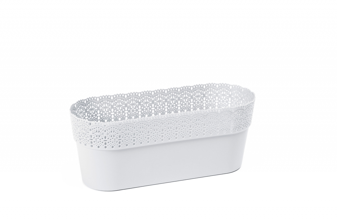 Plastový květináč krajka Bella, oválný 300x117 mm, bílý