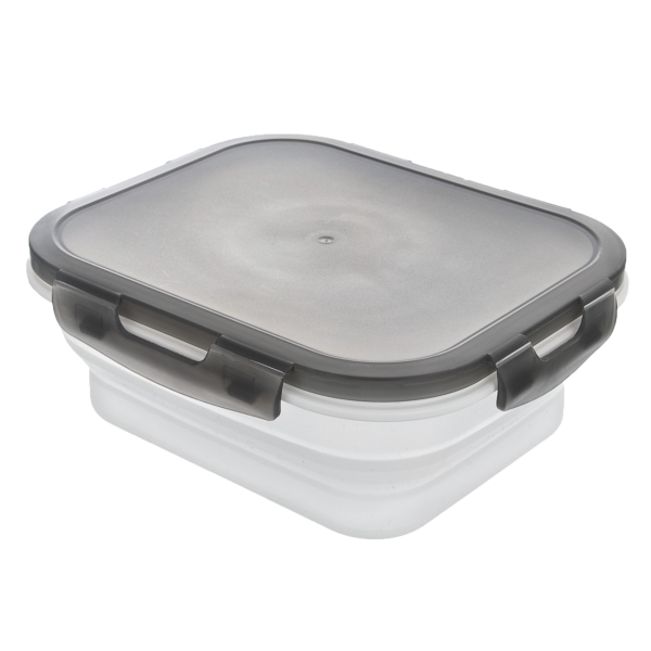 Hranatá skládací dóza s víčkem na pevné uzavírání pomocí 4 klipů. Transparentní s těsněním. Složená šetří místo ve skříňce, hodí se skvěle do karavanů, na kempování, na cesty. Vhodná do chladničky, MVT (bez víčka), vhodná do myčky na nádobí. Materiál: plast PP, silikon. Rozměry: objem 1 l,... przeczytaj całość