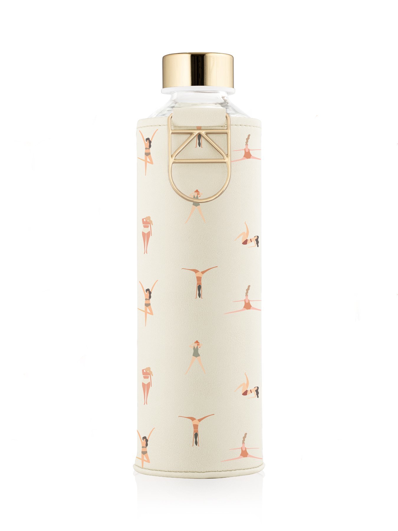 EQUA Mismatch Playa 750 ml designová luxusní ekologická skleněná lahev na pití s obalem z umělé kůže