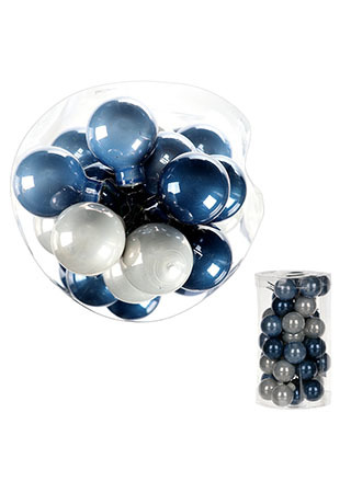 Ozdoby skleněné na drátku, modro-bílé barvy, pr.2.5cm, cena za 1 balení(36ks)