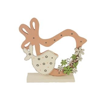 Dekorace ptáček.Rozměry : 18 x 4,3 cm, výška 16 cm.Barva : kombinace růžová s bílou, zelenou.Materiál na bázi dřeva. przeczytaj całość