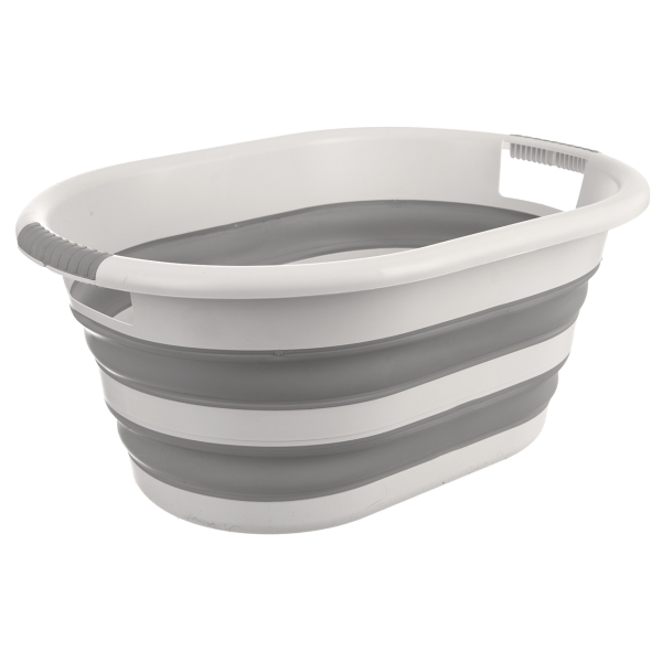 Prádelní otevřený koš s uchy v netradičním provedení - skládací - nezabere téměř žádné místo, když ho nepotřebujete. Snadno a rychle ho složíte. Přitom je plně funkční. Skvělý do malých bytů, na chatu, do karavanů... Materiál: silikon TPE, plast PP. Rozměry: objem 38 l, 63x44x9/27 cm. przeczytaj całość