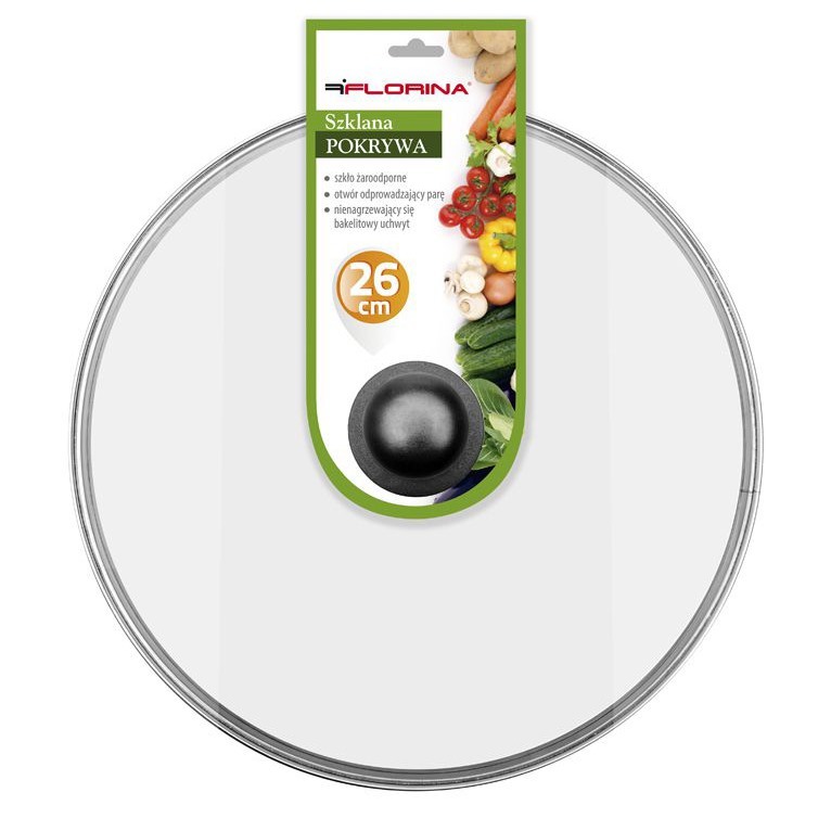 Szklana pokrywka o średnicy 26 cm z metalowym obrzeżem i praktycznym otworem do odprowadzania pary to niezbędny dodatek w Twojej kuchni. Dzięki niej będziesz mieć kontrolę nad przebiegiem gotowania, bez konieczności podnoszenia pokrywki i tracenia ciepła.