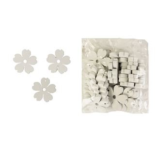 Sada dekoračních kytek.Sada obsahuje 25 kytek.Kytky mají průměr 3 cm, tloušťku 0,2 cm.Barva : bílá.Materiál : MDF. przeczytaj całość