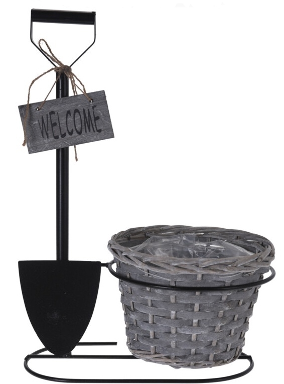 Kovový stojan v podobě rýče s proutěným košíkem a dřevěnou cedulkou.Materiál: kov, proutíRozměry:výška 46,5 cmšířka 22 cmhloubka 33 cmkvětináč 21x14 cm przeczytaj całość