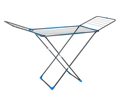 Stabilní přenosný sušák na prádlo ONYX nabízí 18 metrů sušící plochy, což představuje až dvě plné pračky prádla. Boční křídla jsou vhodná na sušení delšího prádla. Praktickým pomocníkem je držák na sušení ponožek. Pro lepší manipulaci je sušák opatřený 2 kolečky. Velkou výhodou je stabilní konstrukce, tvořená kovem v antracitové barvě a plastem v modré barvě.