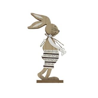 Dekorační zajíc.Rozměry : 13 x 4,5 cm, výška 28 cm.Barva : kombinace přírodní s bílou.Materiál na bázi dřeva. przeczytaj całość