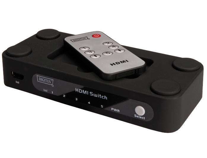 PremiumCord HDMI switch 5:1 s dálkovým ovladačem a napájecím adaptérem