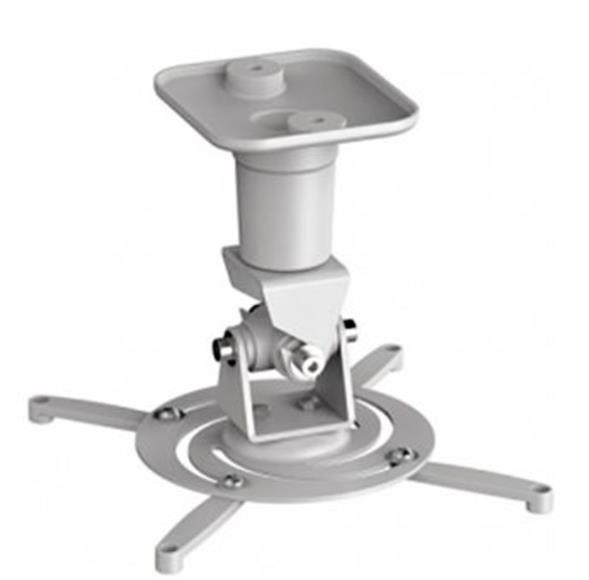 Stropní držák na dataprojektory - vzdálenost od stropu 22cm, přístroj lze otočit o 360° a naklonit +/-25°, maximální zatížení 15kg, kabelový prostup, vhodné i pro uchycení na šikmé plochy, bílý. Univerzální systém uchycení dataprojektorů (rozsah 18-31 cm). przeczytaj całość