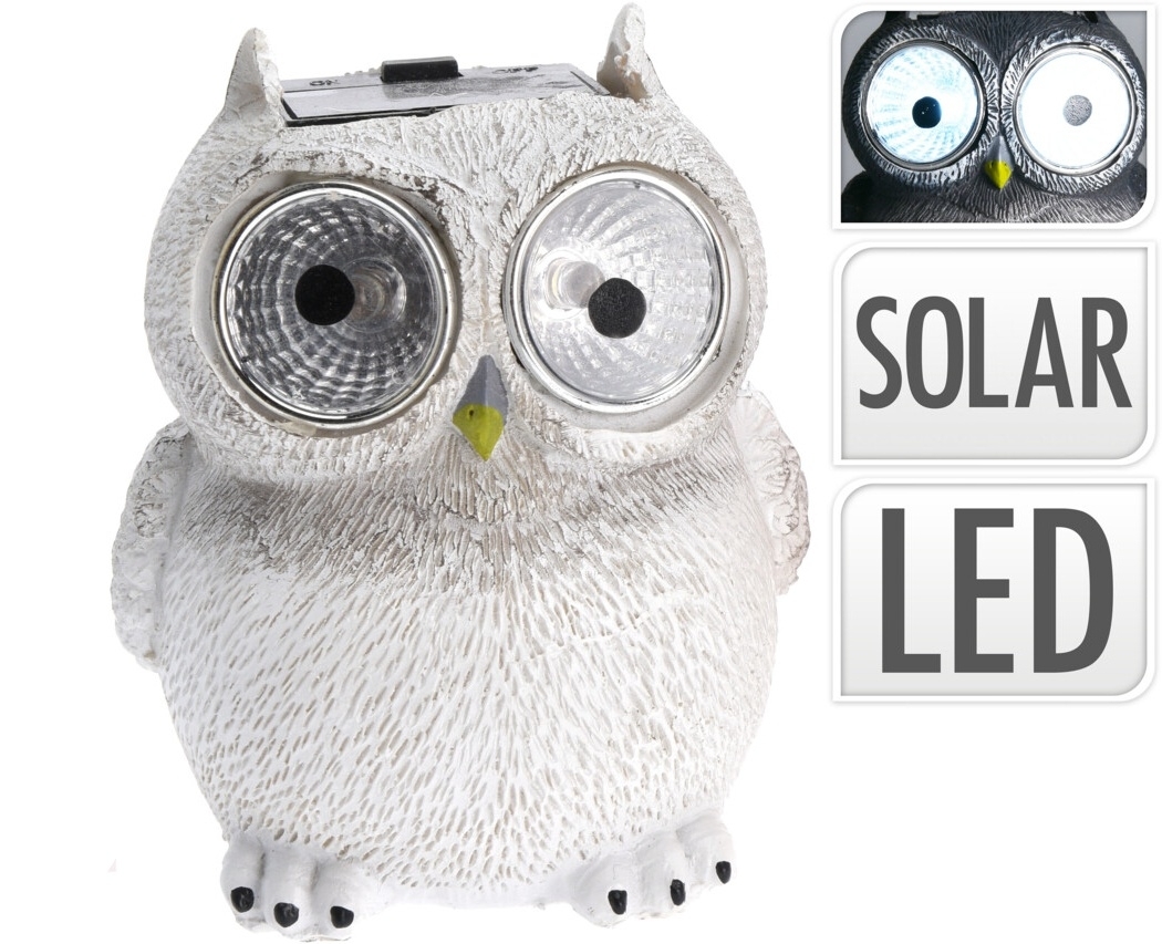 Solární bílá sova na zahradu 7,5x7,5x9 cm