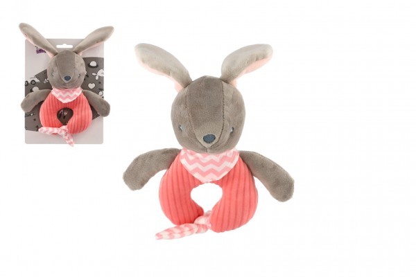 Chrastítko zajíc plyš 17x16cm růžový na kartě v sáčku 0+