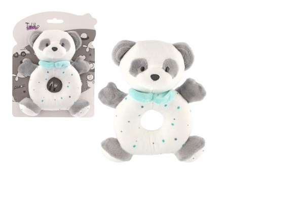Chrastítko medvěd panda plyš 14x17cm na kartě v sáčku 0+