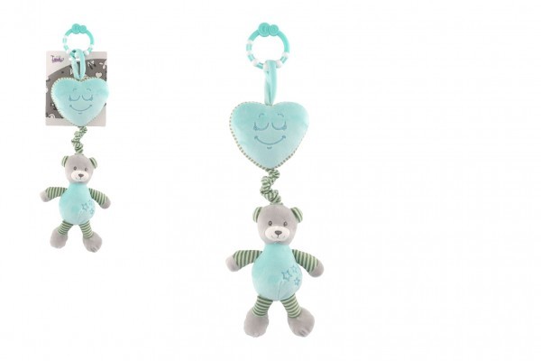 Medvěd se srdíčkem plyš závěs na postýlku/kočárek nat. hrací strojek 36cm zelený na kartě v sáčku 0+
